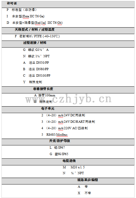 過程溫度(天線部分的溫度)                        (-40~250)℃